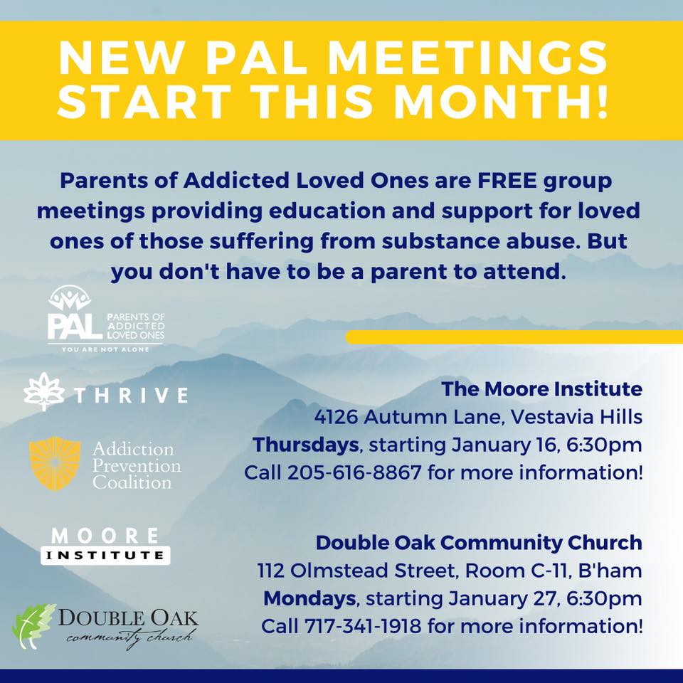 New PAL group will begin on Thursday, August 15. The group will meet weekly from 6:30 PM – 8:00 PM in Vestavia. The group is free and open to all family members, age 18 or older. For more information, click the title.