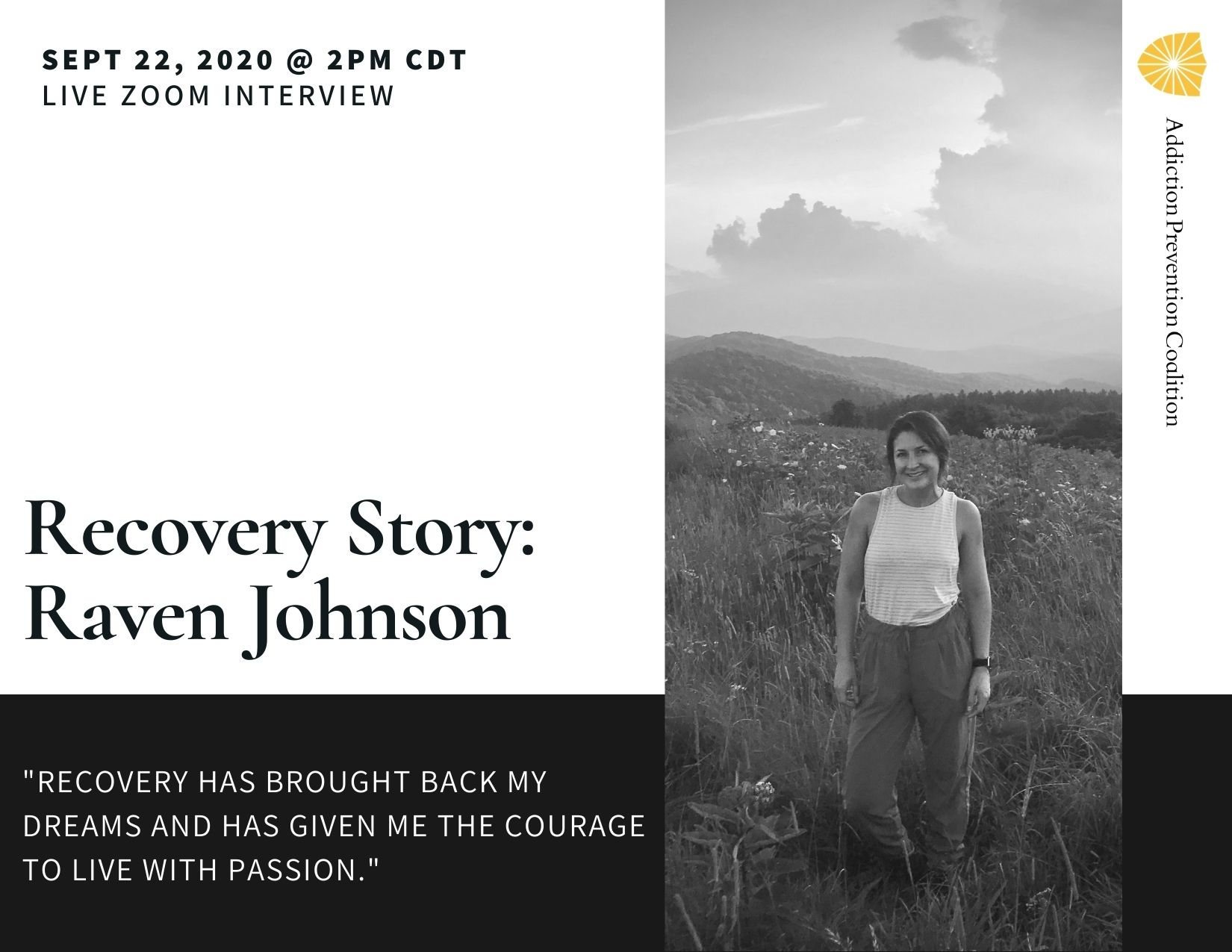 On September 22nd, APC Volunteer and Recovery Coach Art Wimberly interviewed Raven Johnson, a person in long term recovery and passionate advocate for SUD recovery,